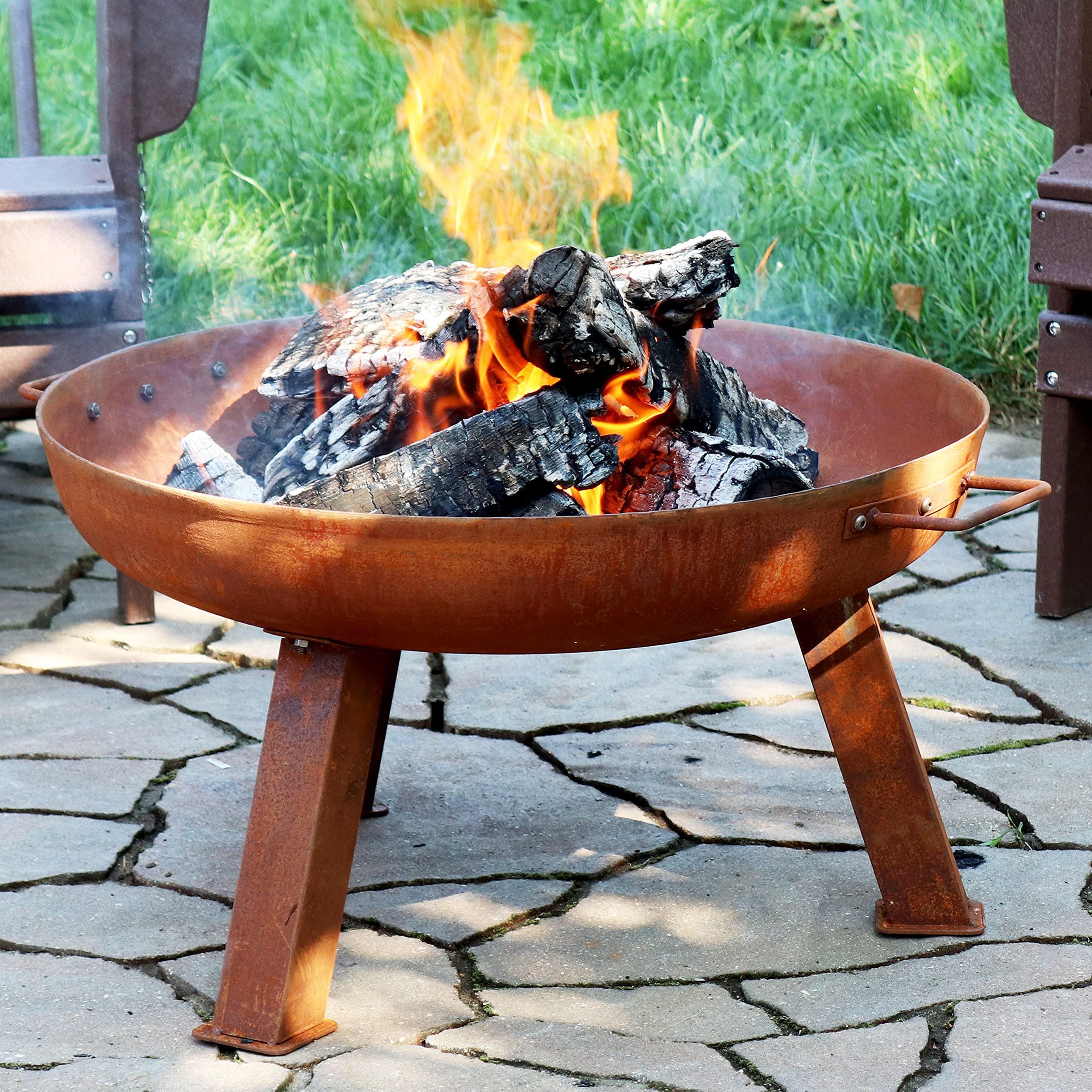 Amazon Com Sunnydaze Rustic Cast Iron Fire Pit Bowl With Handles Outdoor Wood Burning Fire Pit Bowl For Backyard Patio Or Porch 24 Inch Diameter Patio Lawn Garden